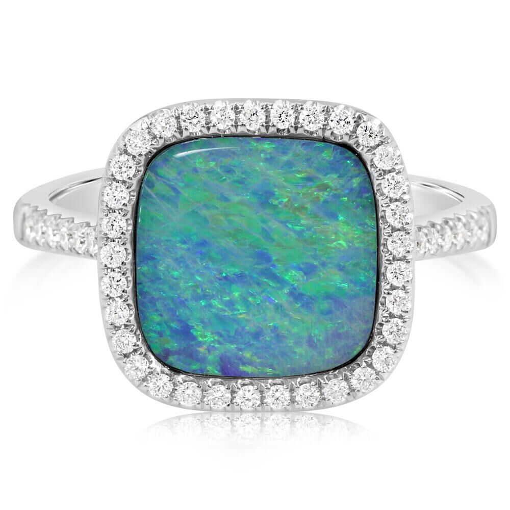 14K White Gold Australian Opal Doublet/Diamond Ring ‘ASBL,N’